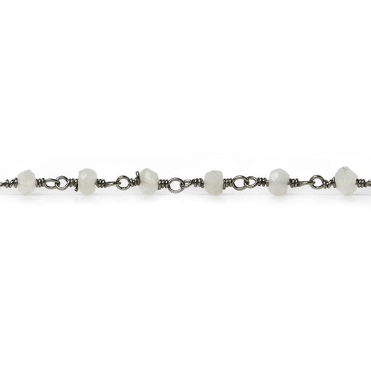 3mm White Moonstone faceted rondelle Black Gold Chain by the foot 35 pieces