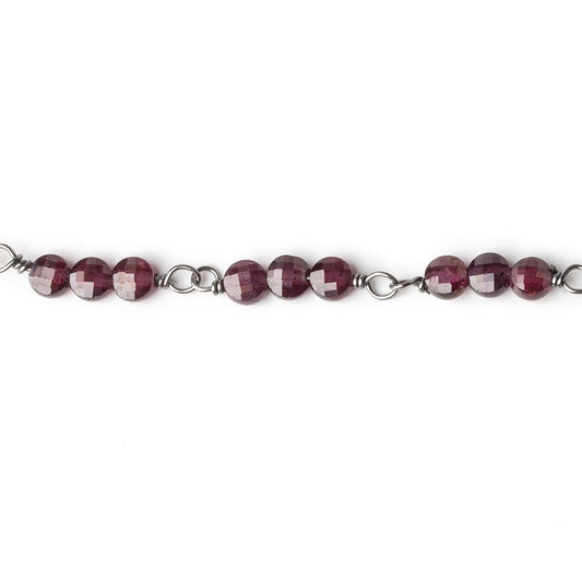 4mm Garnet faceted coin Trio Black Gold Chain by the foot 54 beads per length