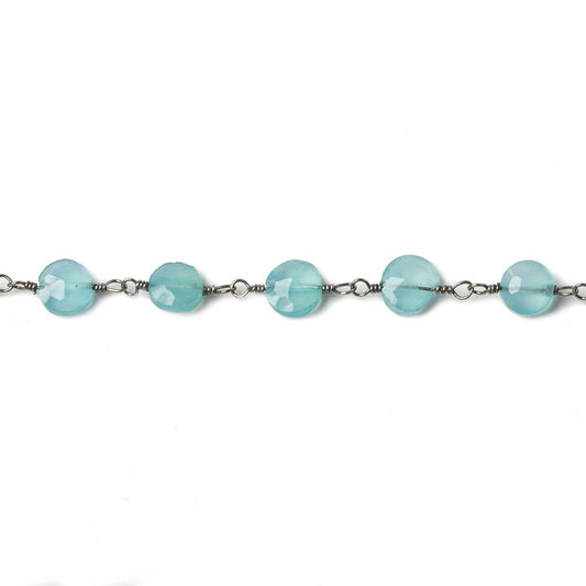 5mm Seafoam Blue Chalcedony faceted coin Black Gold Chain by the foot 27 beads