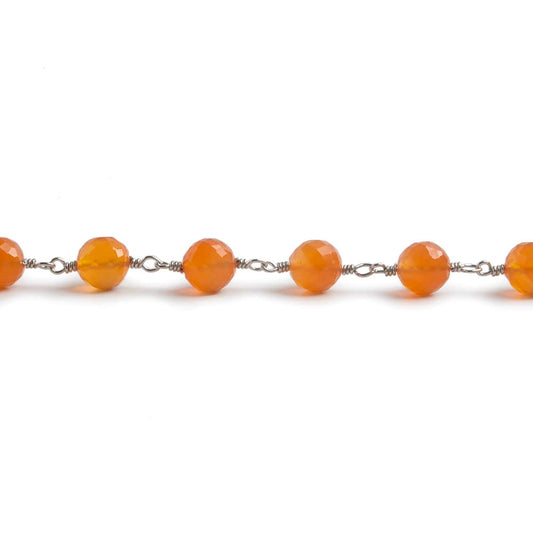 6.5mm Carnelian faceted round .925 Silver Chain by the foot 24 pieces