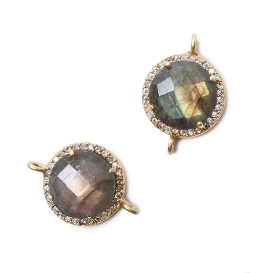 13mm Vermeil Bezel White CZ and Labradorite Coin Connector 1 focal bead