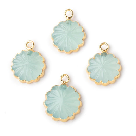 11mm Gold Leafed Seafoam Blue Chalcedony Carved Floral Coin Focal Pendant 1 piece