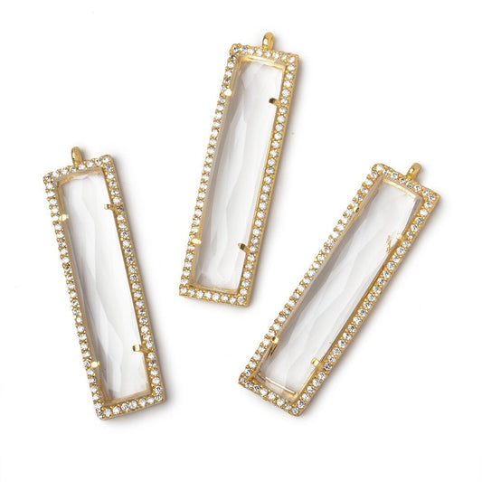 39x10.5mm Vermeil CZ Bezel Crystal Quartz Bar Pendant 1 Focal