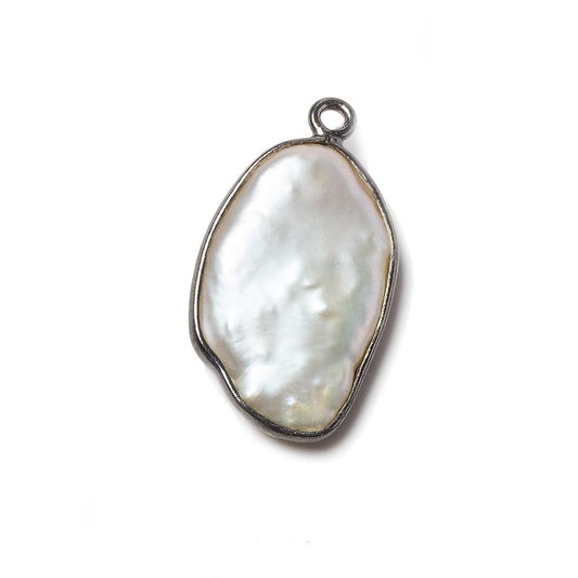 20x12mm Black Gold Bezeled Rose' White Keshi Pearl Pendant 5 piece