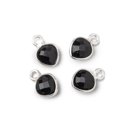 7mm Bezel Set Black Onyx Faceted Heart Set of 4 Pendants