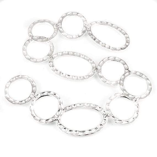 19mm & 29x19mm Sterling Silver plated Copper Hammered Circle and Oval Beads 11 pieces*DISCONTINUED*