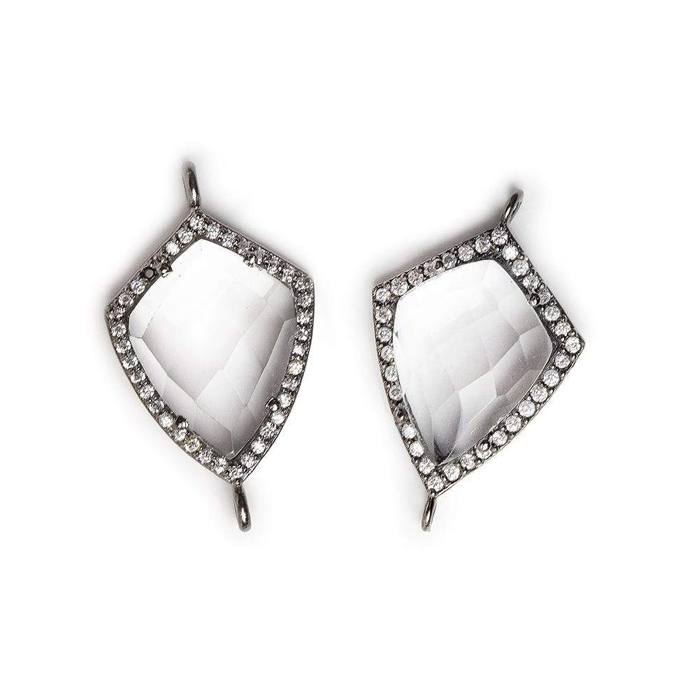 19.5x15mm Black Gold Bezel White CZ & Crystal Quartz Shield Connector 1 focal bead