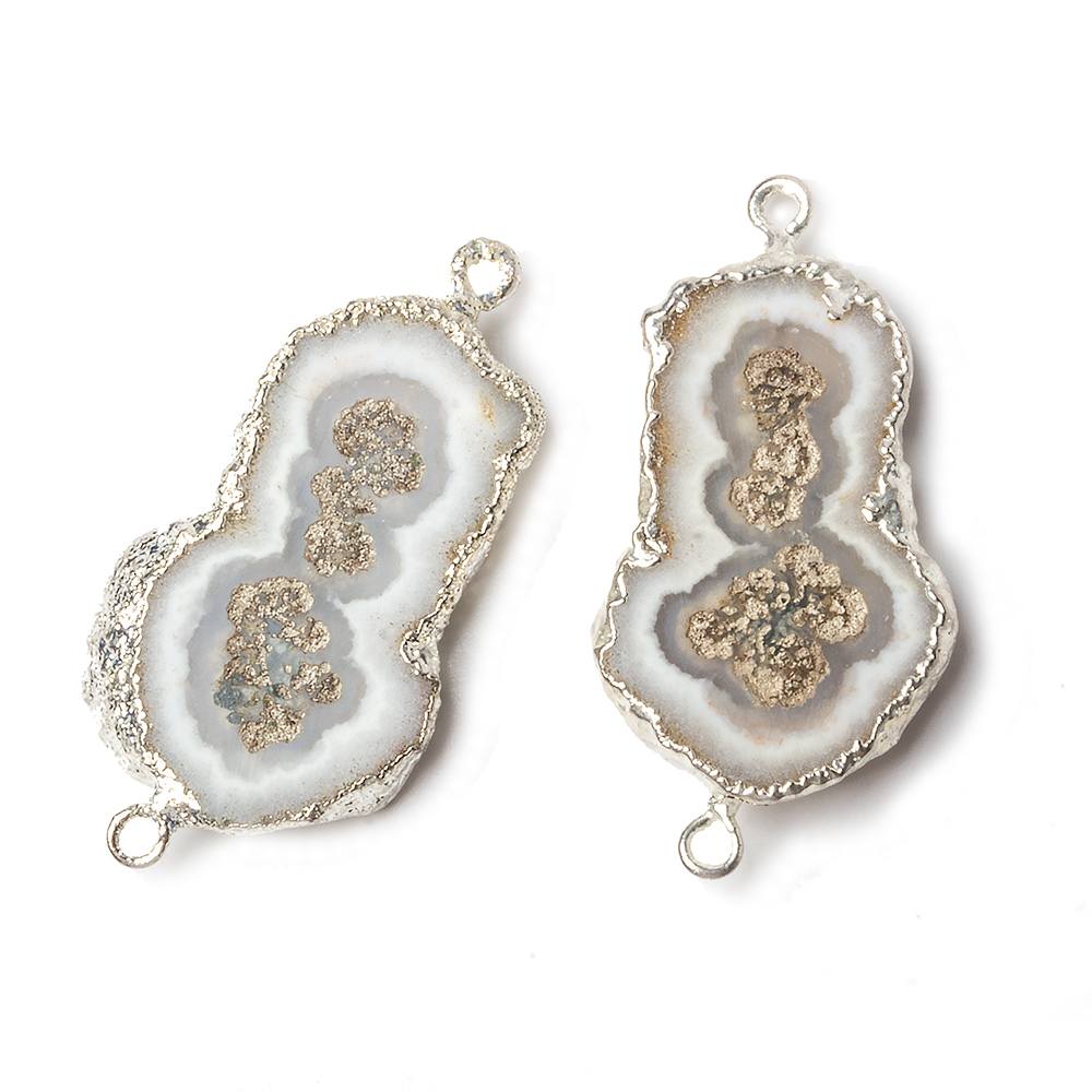 23x16-24x16mm Silver Leafed Solar Quartz Slice Focal Connector Set of 2