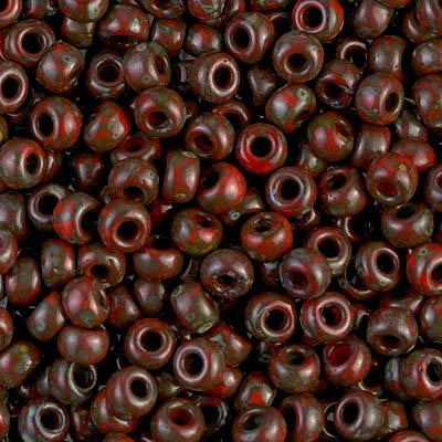 Opaque Red Picasso is a Czech coating that may be applied unevenly or appear different in each dye lot.