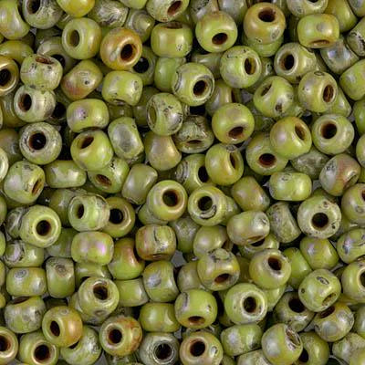 Opaque Chartreuse Picasso is a Czech coating that may be applied unevenly or appear different in each dye lot.