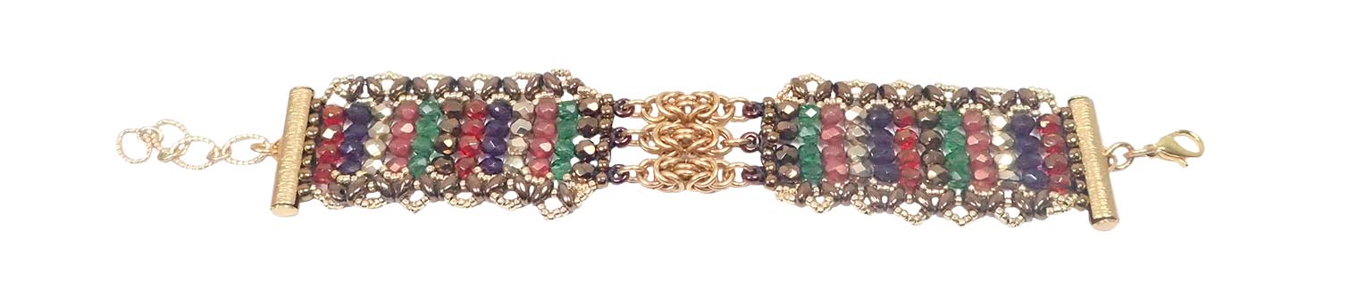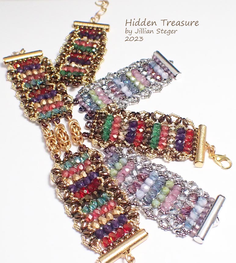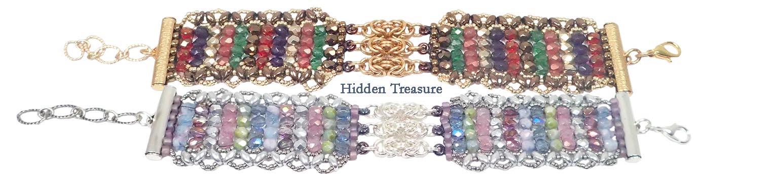 Hidden Treasure designed by Jillian Steger. Jillian is a great creative link here at Glass Garden Beads. Jillian is also the creative designer for our Urban Strap Line