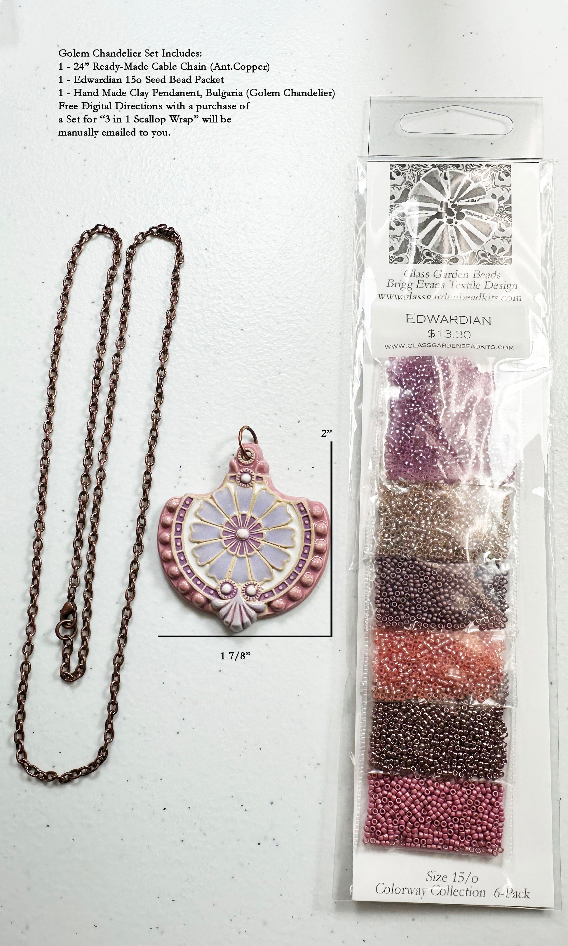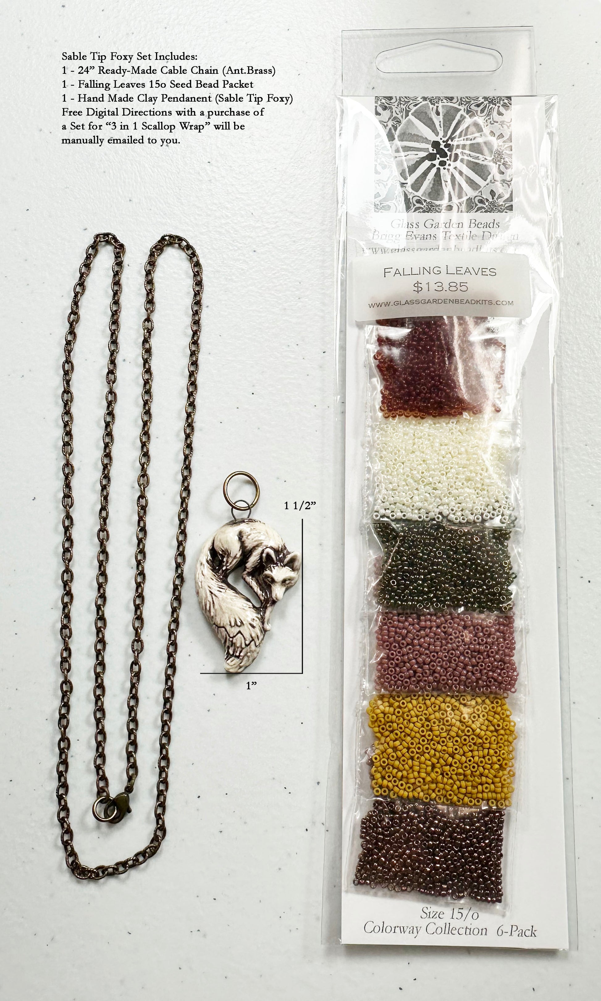 Our novelty sets include a special handmade pendant that adds an artisan touch. Each set comes with a 15o color packet from our variety of color palettes designed to match well together. You’ll also receive a 24-inch finished cable chain, along with a needle and Fireline thread. This combination creates the perfect set for your projects! When you buy the set, I will send you an email with a FREE set of "3-in-1 Scallop Wrap Digital Directions" to help you get started. Enjoy your crafting!