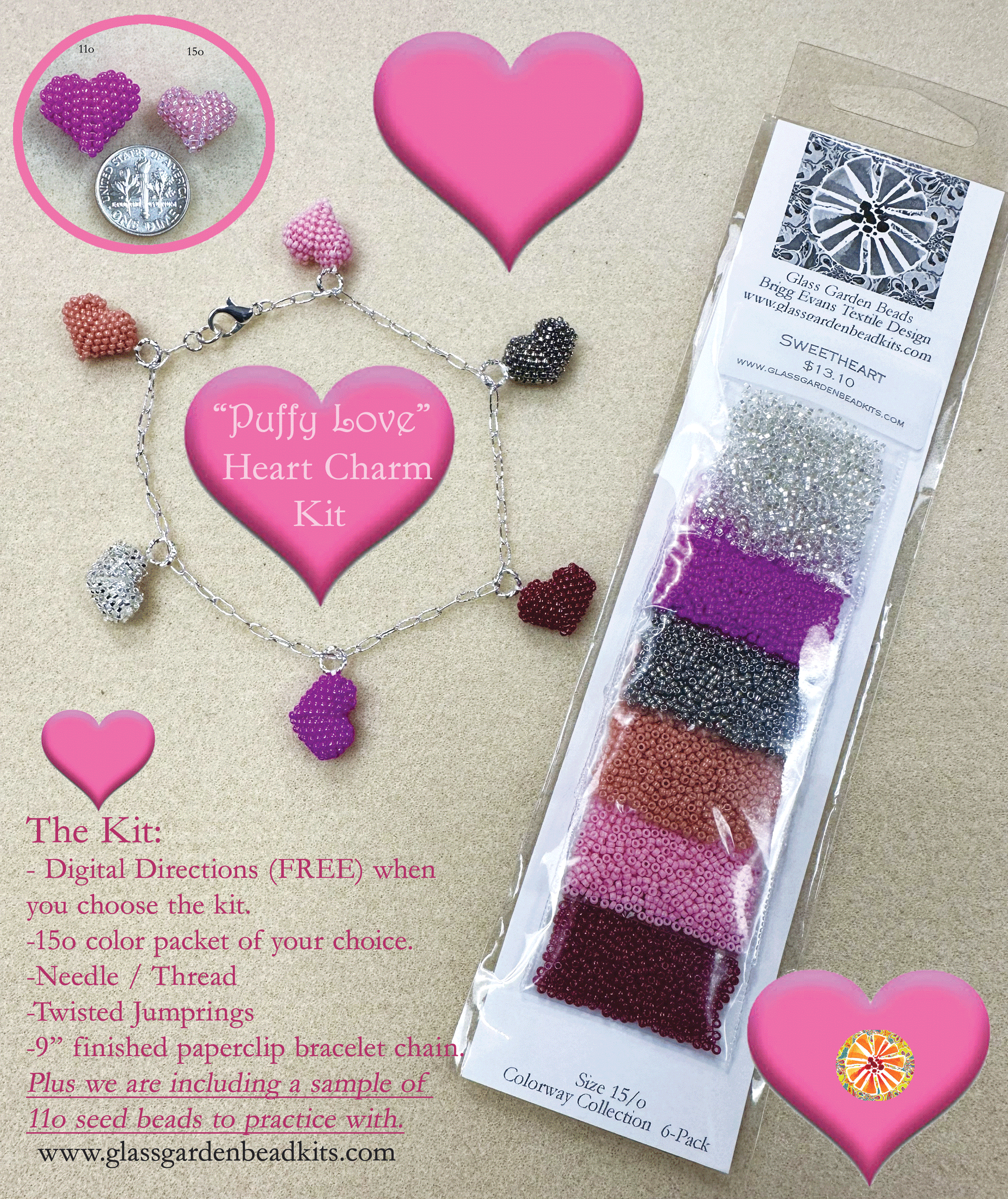 The puffy hearts are not a design that Glass Garden Beads Created. We did a lot of research regarding achieving a seed bead puffy heart. Below are the YouTube links we referenced. The written directions and all pictures come from Glass Garden Beads, LLC, and remain copyright-protected.