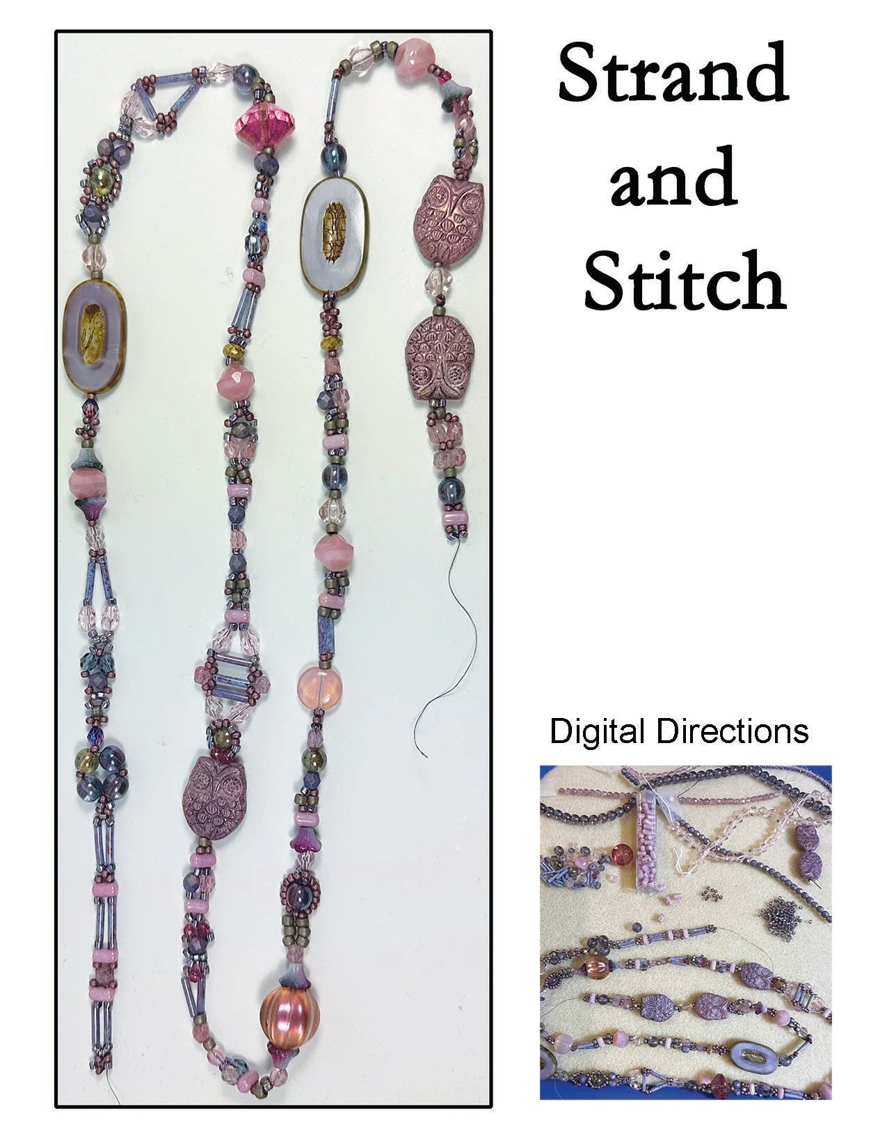 Strand and Stitch is an exciting project that combines different sizes and types of beads to create a beautiful necklace. You’ll use a mix of stranding and stitching techniques, including square stitch, right-angle weave, and more, to connect all the beads into a fun, easy-to-wear necklace that you can just slip over your head!